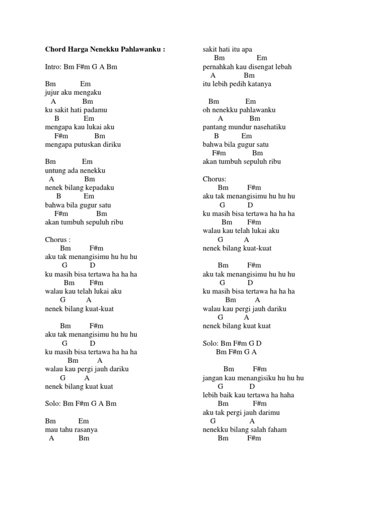 Chord Harga Nenekku Pahlawanku By Sava Savi
