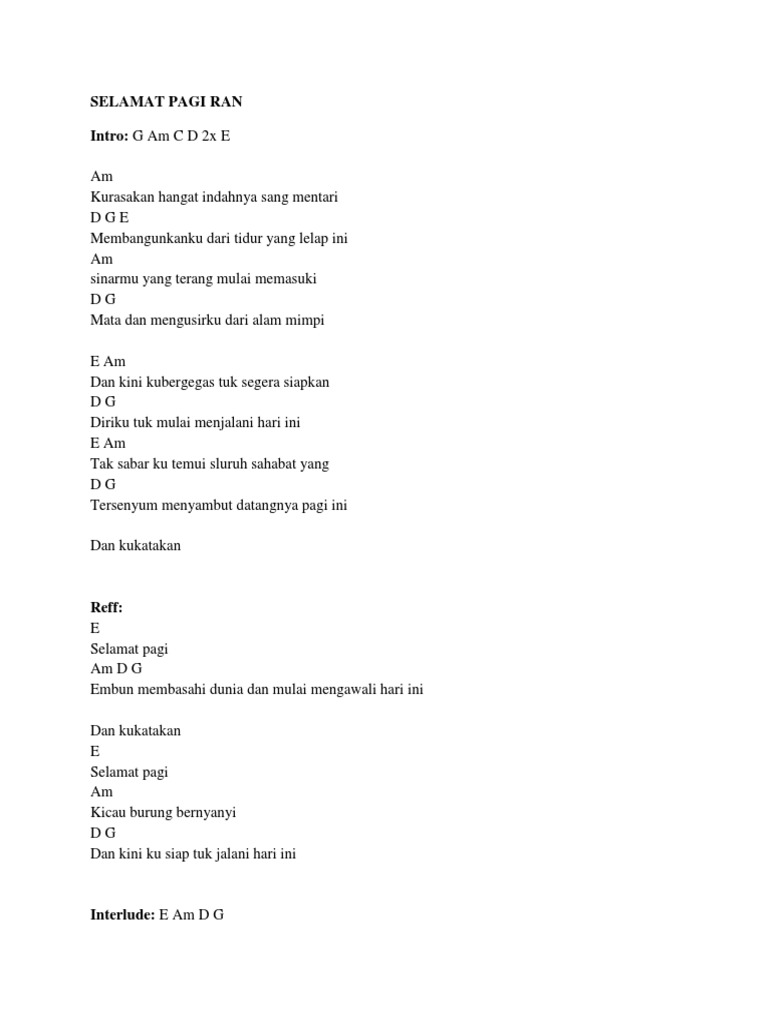 Lirik Lagu Selamat Pagi Ran Docx